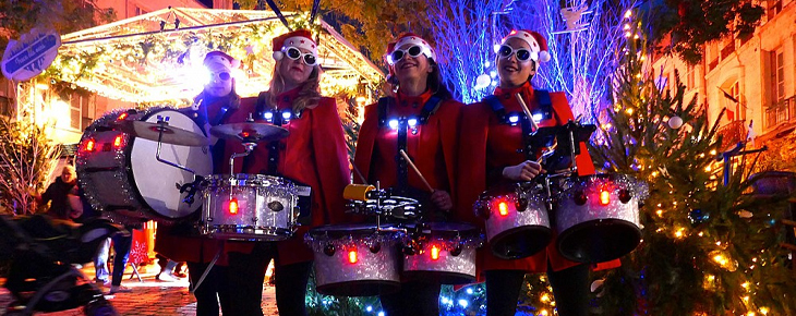 Les animation musicales de noël sont très recherchées pour la période des fêtes : fanfares habillées sur un thème hivernal et tout autre spectacle de rue faisant référence aux fêtes de noël.
