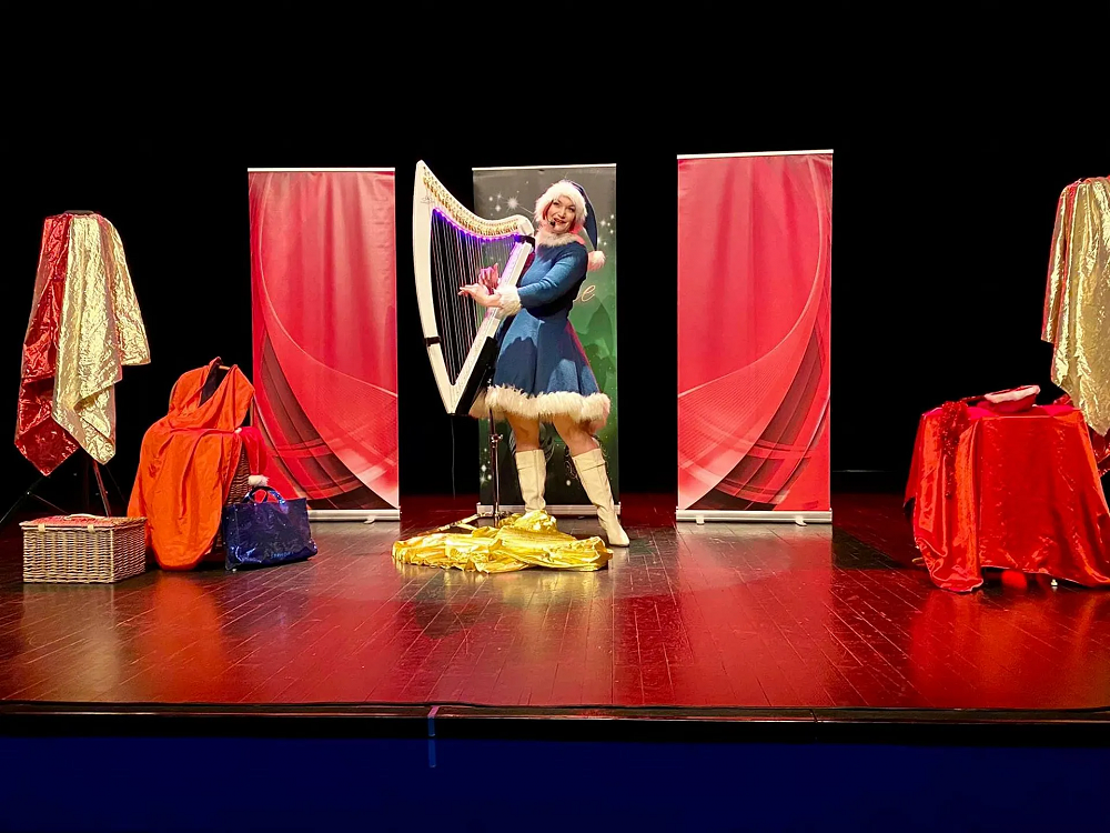 Jonglerie, magie, musique de harpe, chansons de Noël, musique sur cloches,