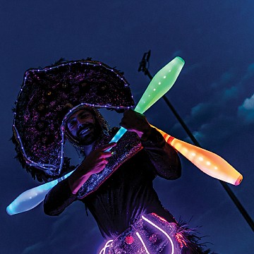 Qu’il s’agisse d’un défilé festif, d’une parade de rue ou d’une représentation fixe, leurs artistes transforment chaque espace en scène magique : balles et massues colorées semblent flotter dans les airs, costumes étincelants de plumes et de lumières captivent les regards, tandis que les acrobaties et improvisations rapprochent le spectacle du public.