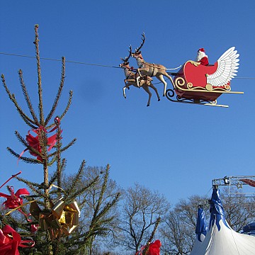 Imaginez la surprise dans les yeux des enfants comme des adultes : un véritable traîneau, unique en France, s’élance dans le ciel et glisse majestueusement sur un câble au-dessus du public. Accompagné de ses fidèles rennes, le Père Noël fait son apparition pour un moment féérique et inoubliable.