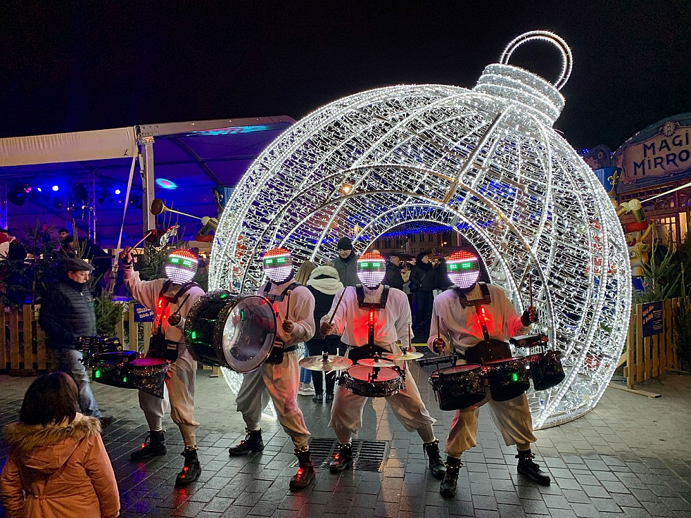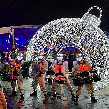 Inédits et spectaculaires, les Jingle Drums débarquent tels des lutins malicieux, débordant d’énergie et de bonne humeur. Avec leurs sonorités grelotantes et leur batterie mobile aux couleurs de saison, ils bravent le froid pour offrir un show aussi chaleureux que pétillant.