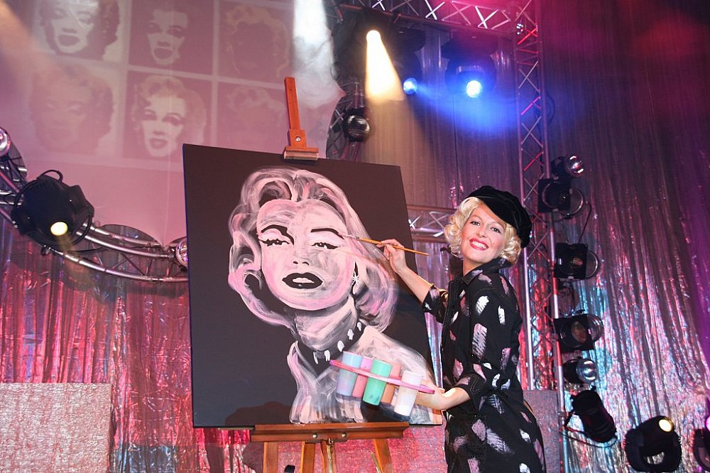 Le speed painting animé donc par un speed painter consiste à réaliser des portraits en un temps record de l’ordre de 4 à 5 minutes. ISABELLA réalise les portraits hommage à Edith Piaf et à Marylin Monroe. Performance physique, picturale et musicale : les spectateurs sont entraînés dans un voyage mémorable et spirituel plein d’intensité, de rebondissements et d’émotions